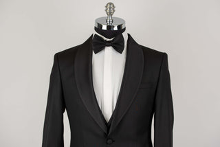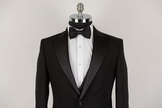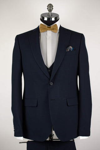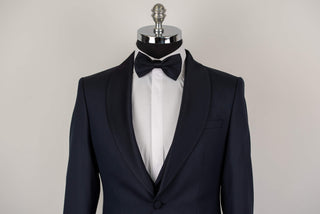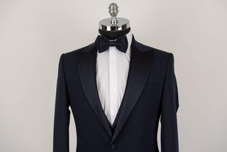 Tumši zils Quesste pagarināts smokings ar satīna atlokiem