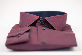 Tumši sarkans Nino Pacoli pagarināts krekls ar zilu rakstu