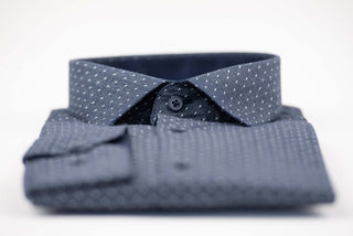 Tumši zils Nino Pacoli pagarināts krekls ar sarkaniem punktiņiem