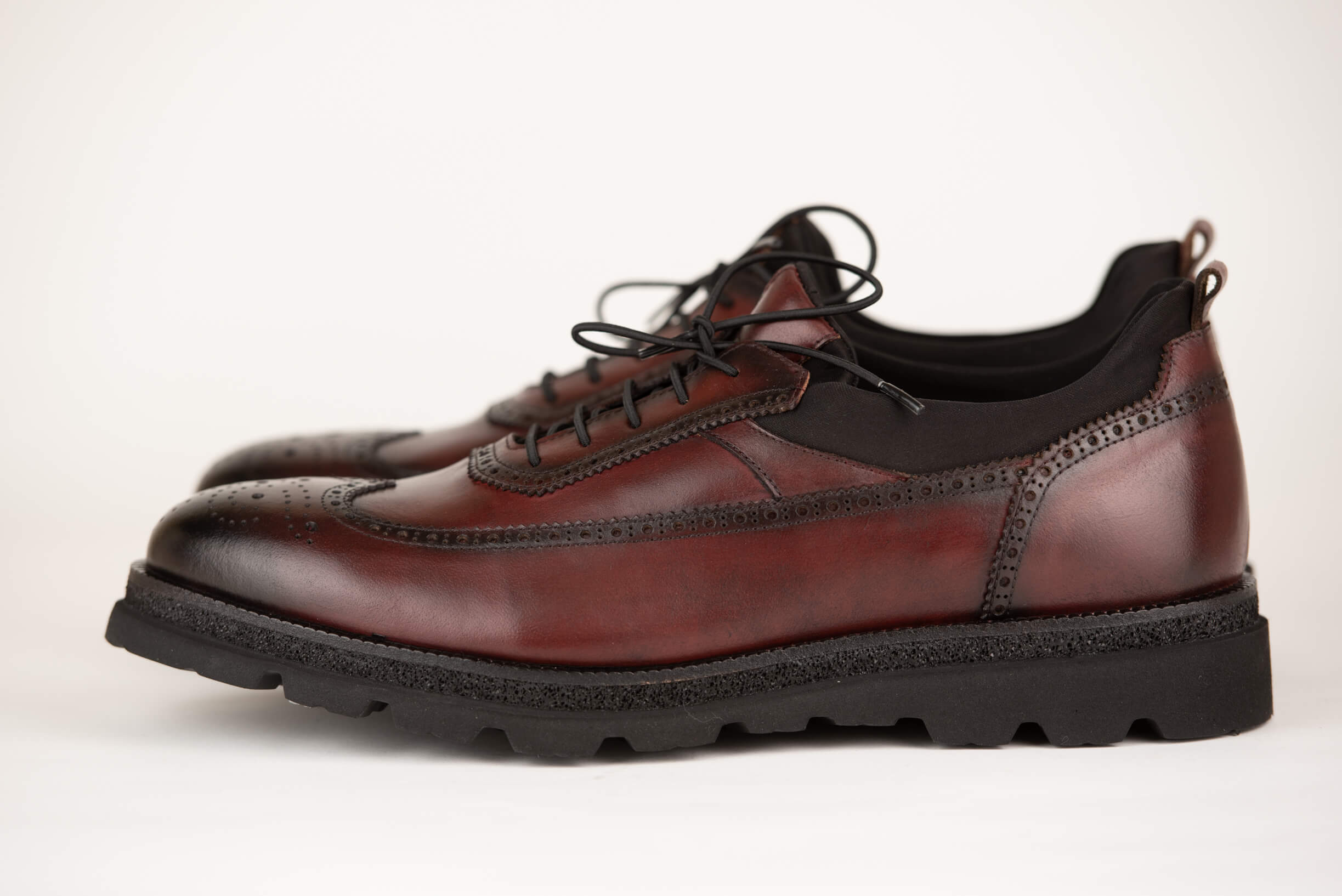 Tumšas bordo krāsas Toroslar ādas kurpes ar masīvu zoli