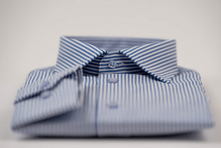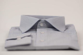 Manschett viegli gludināms, maz burzīgs slim fit krekls ar smalkām tumši zilām un baltām strīpām