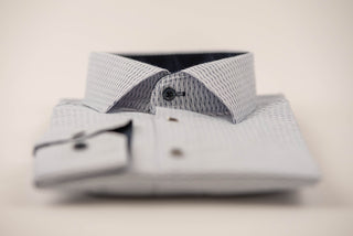 Balts Nino Pacoli viegli gludināms, maz burzīgs slim fit krekls ar tumši zilu rakstu