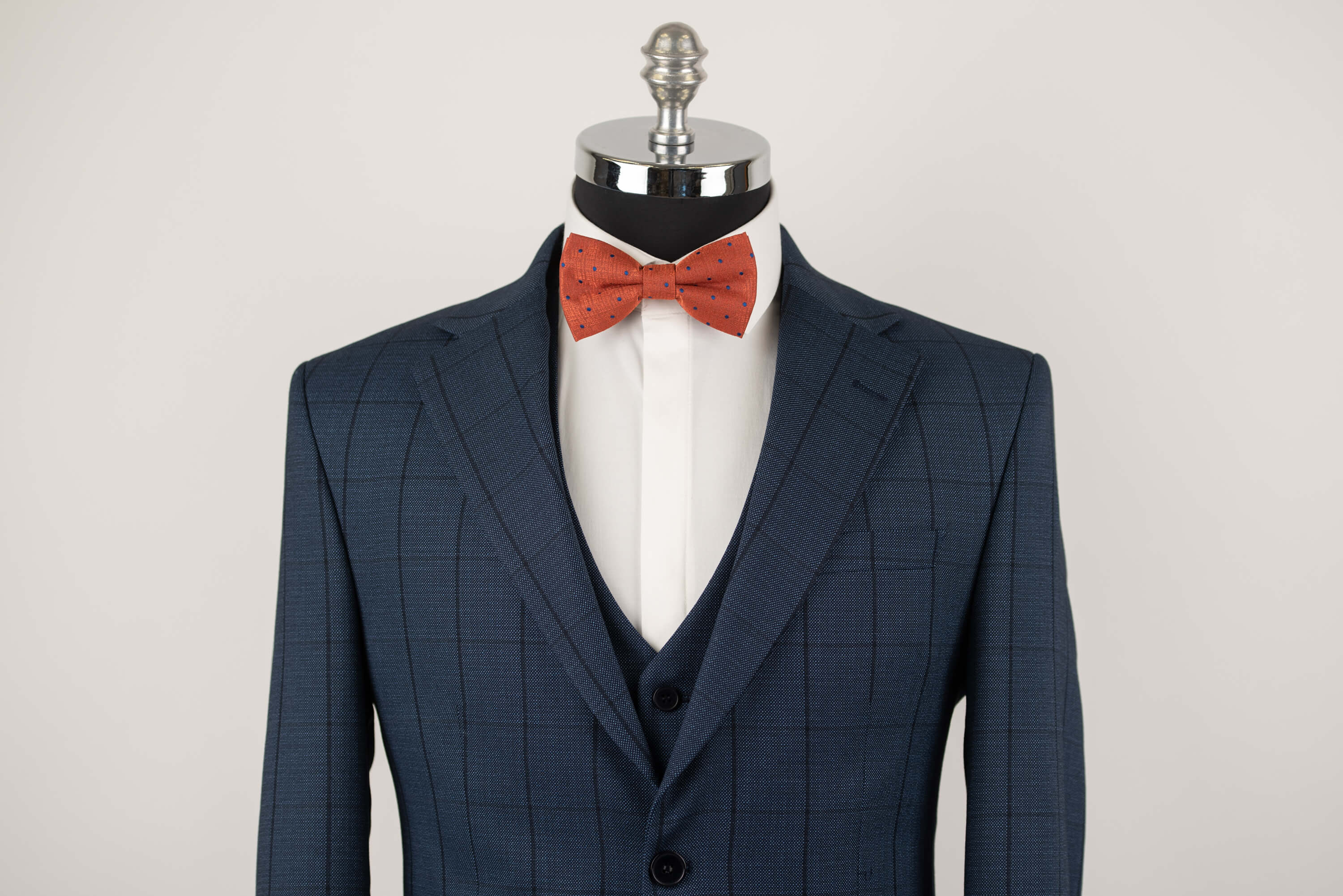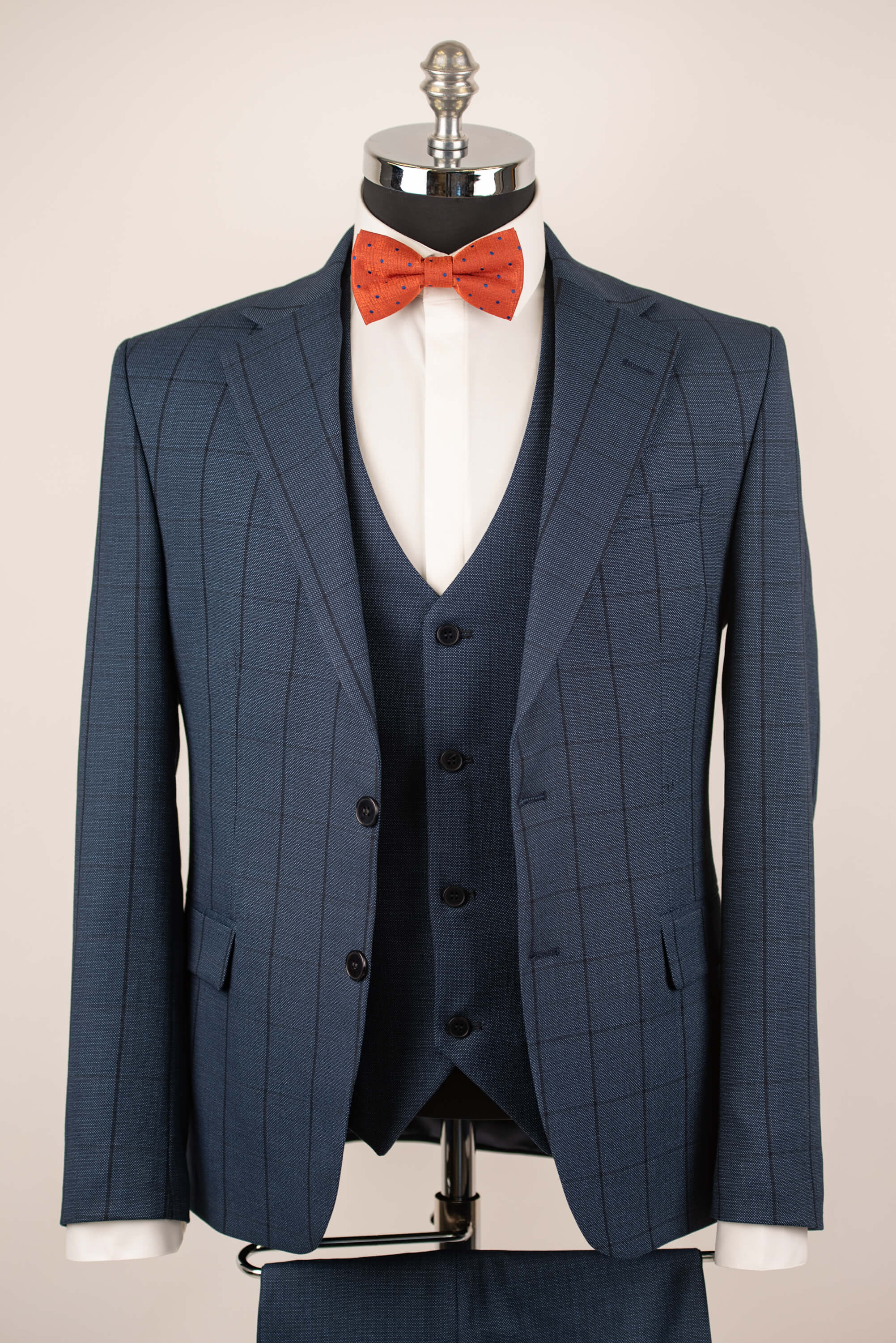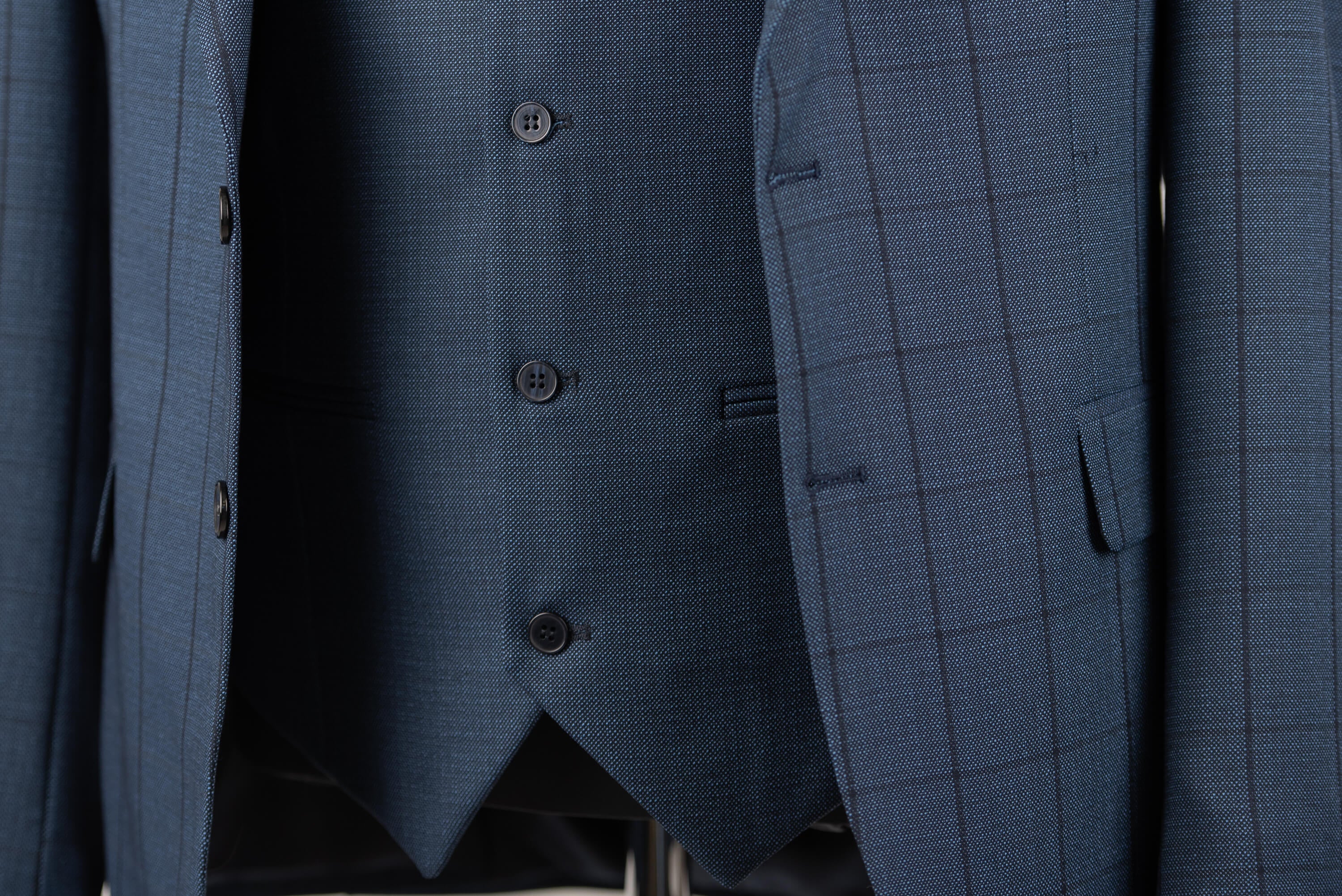 Zils Azzaro slim fit uzvalks ar vesti un rūtainu rakstu