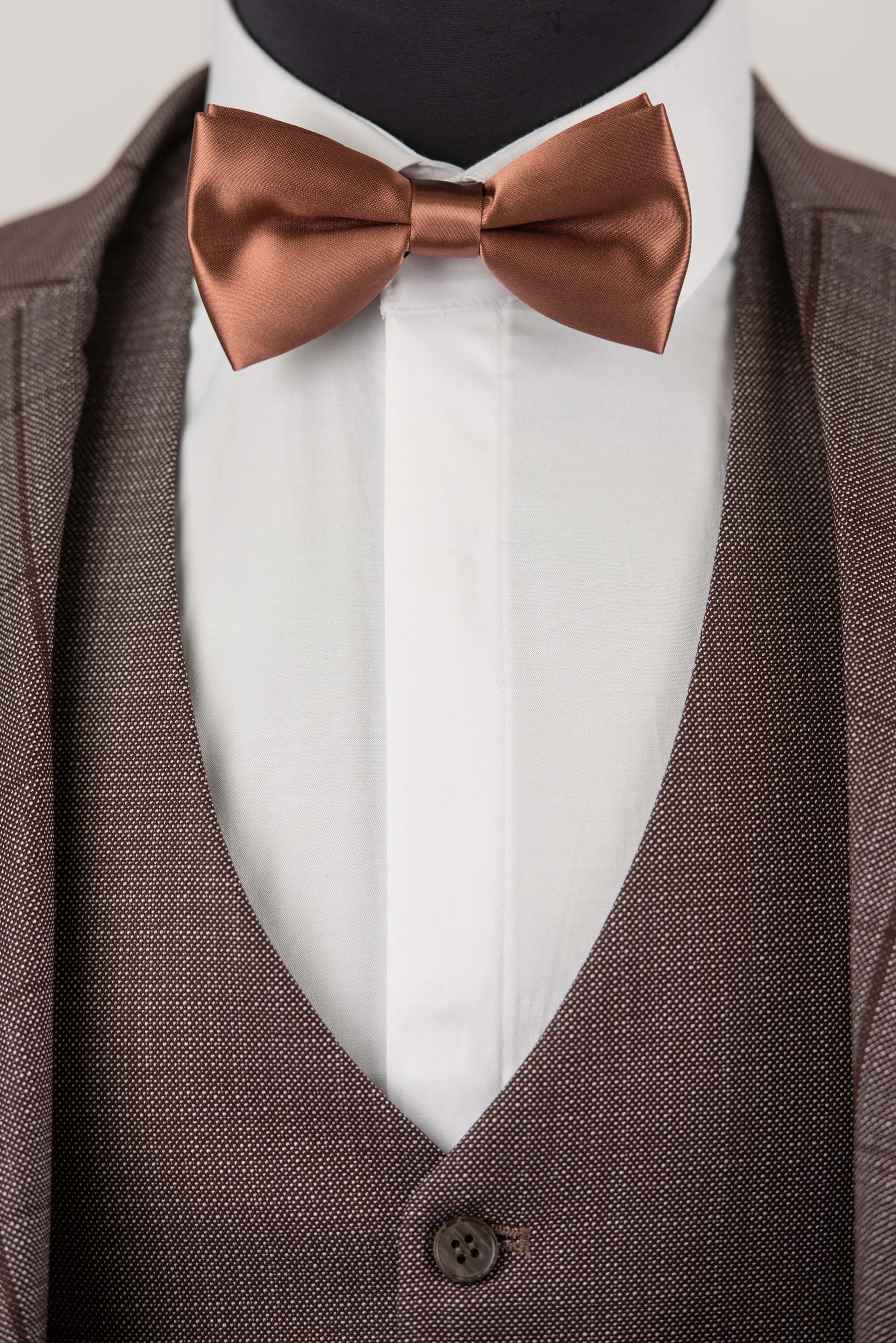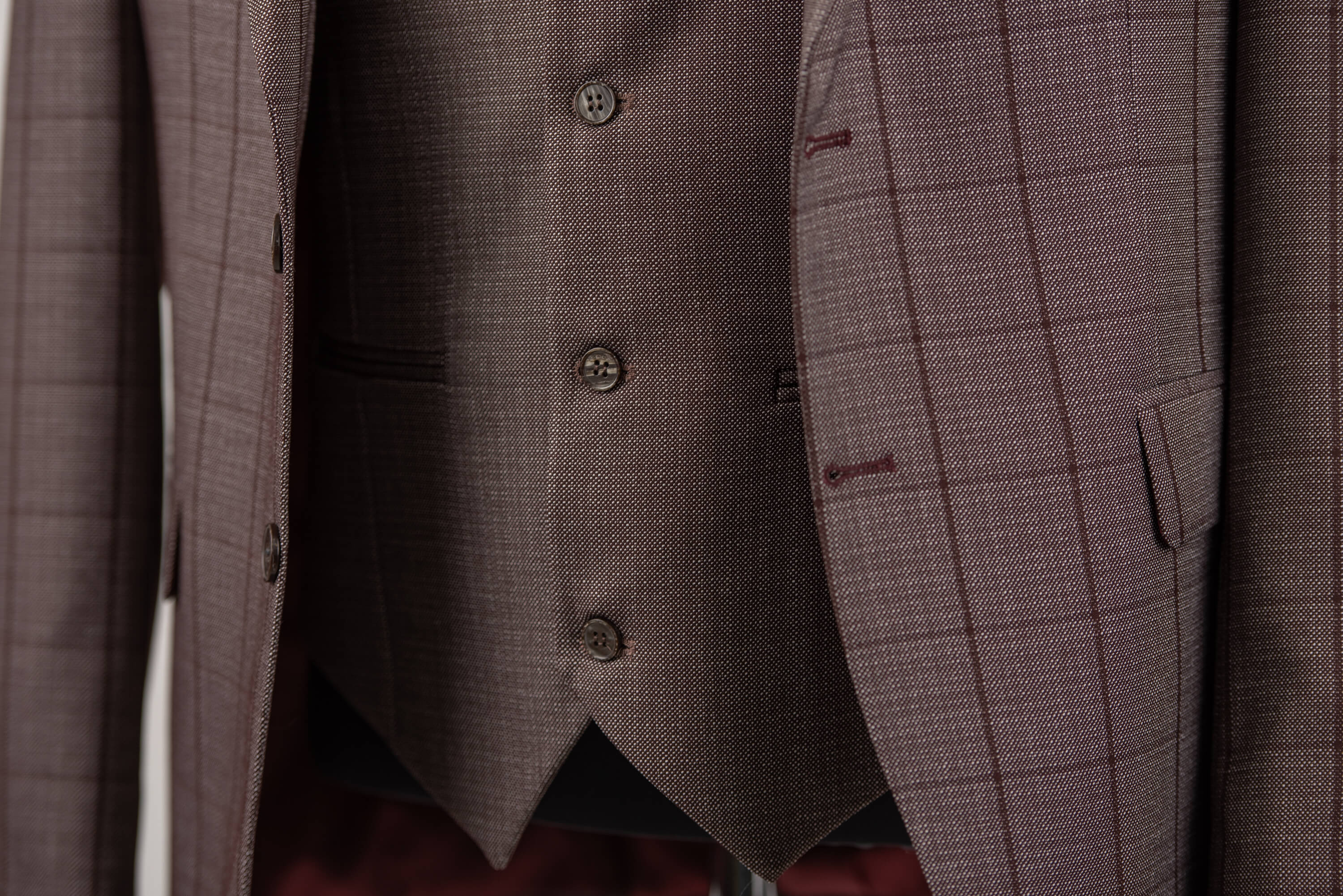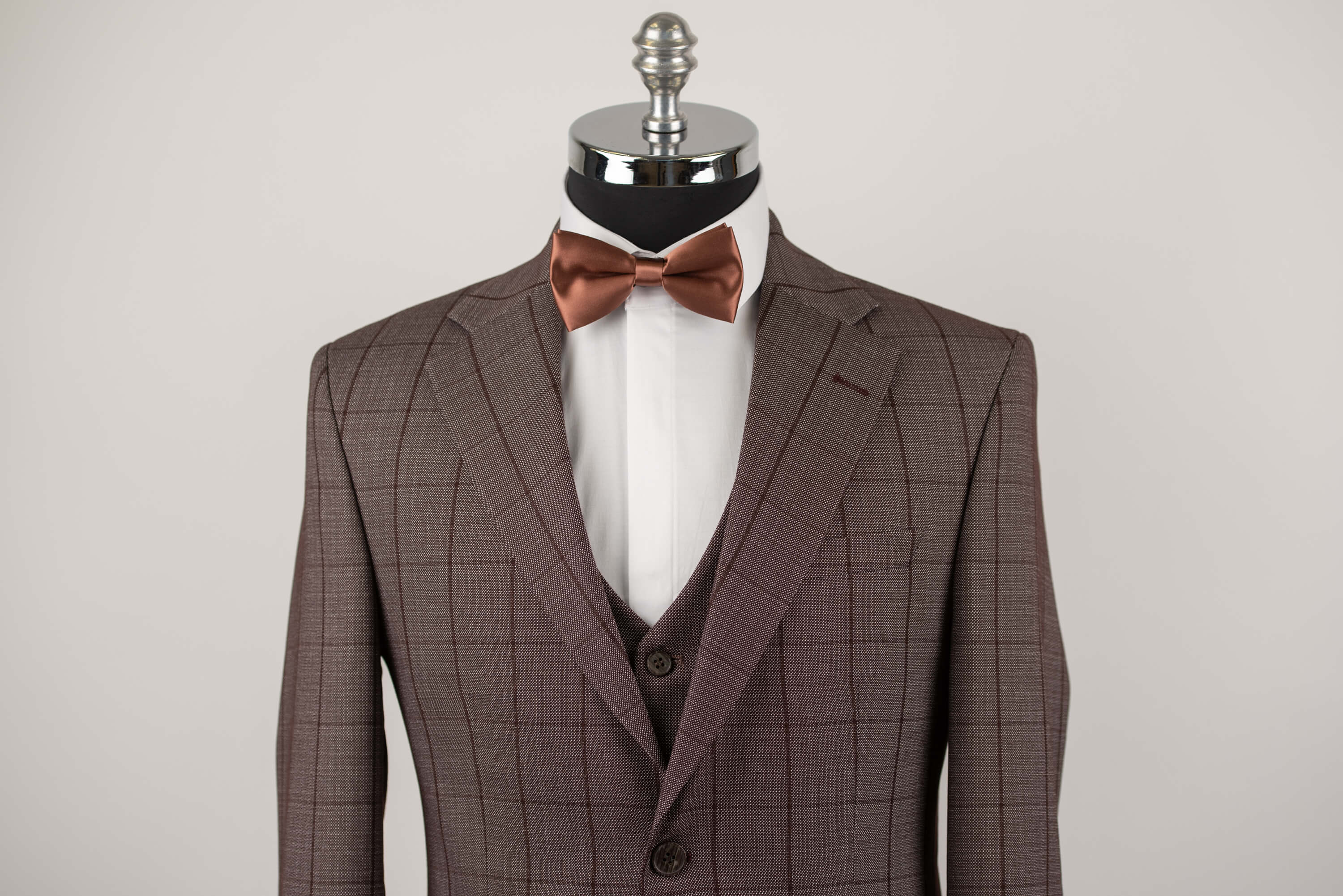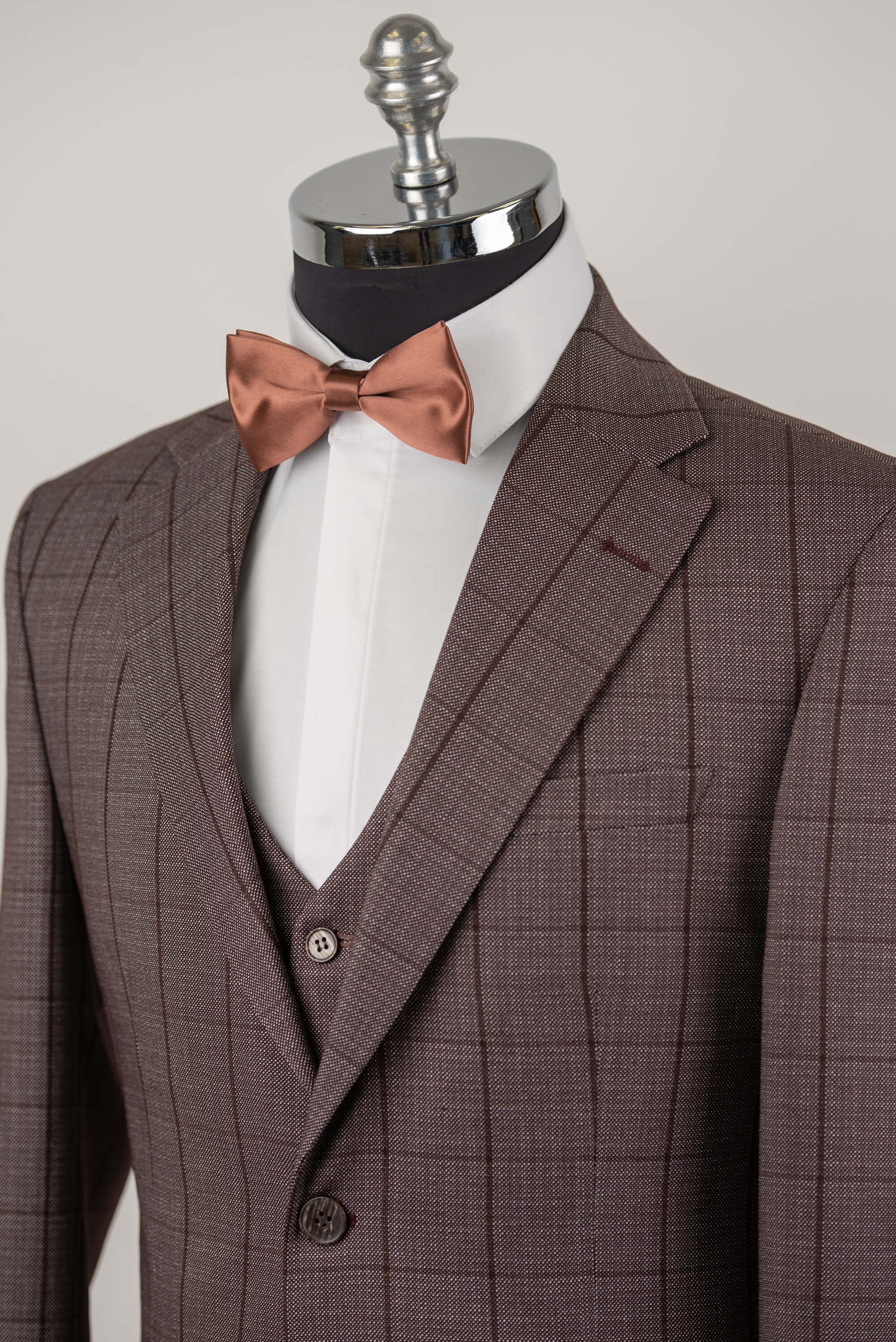 Brūns Azzaro slim fit uzvalks ar vesti un rūtainu rakstu
