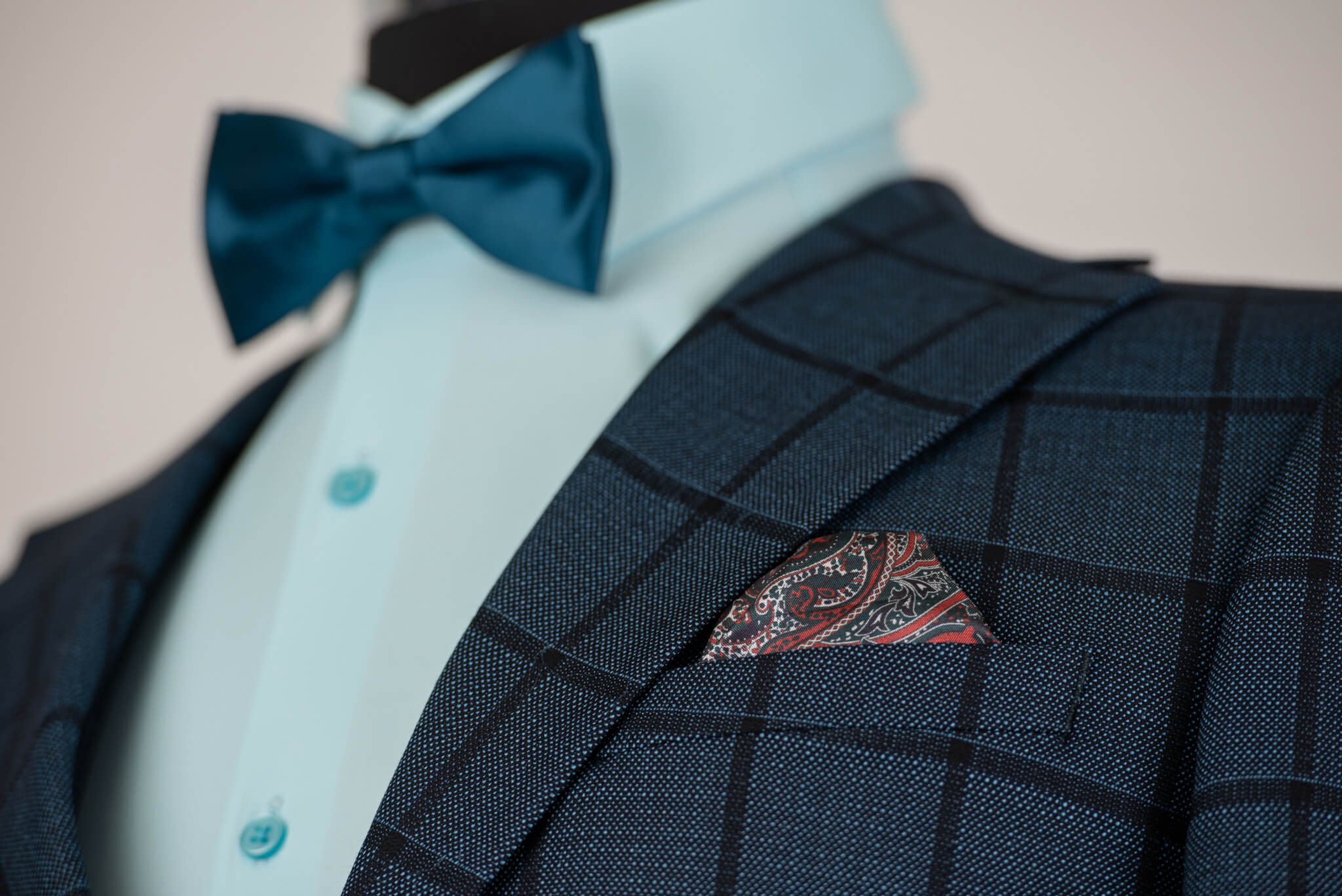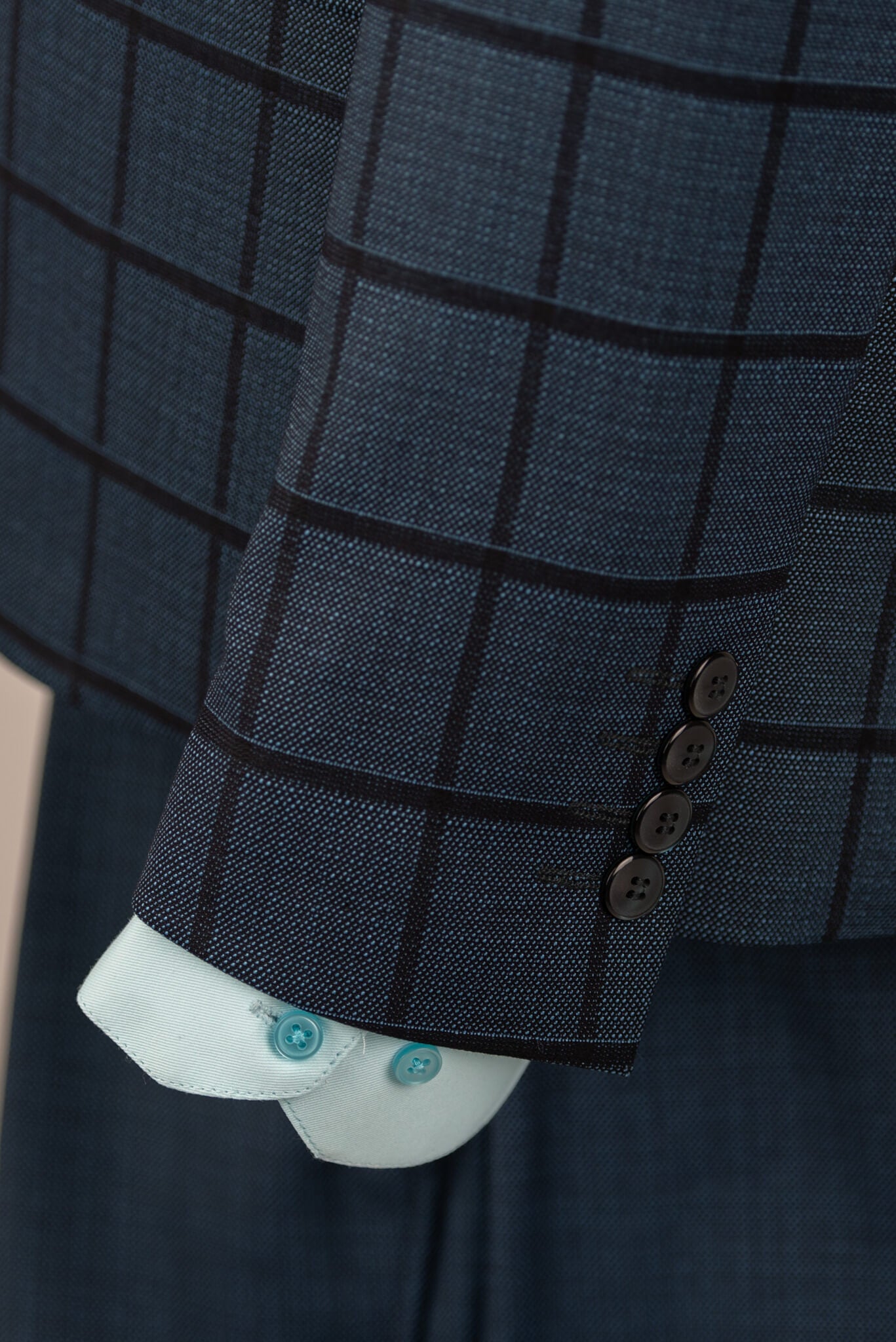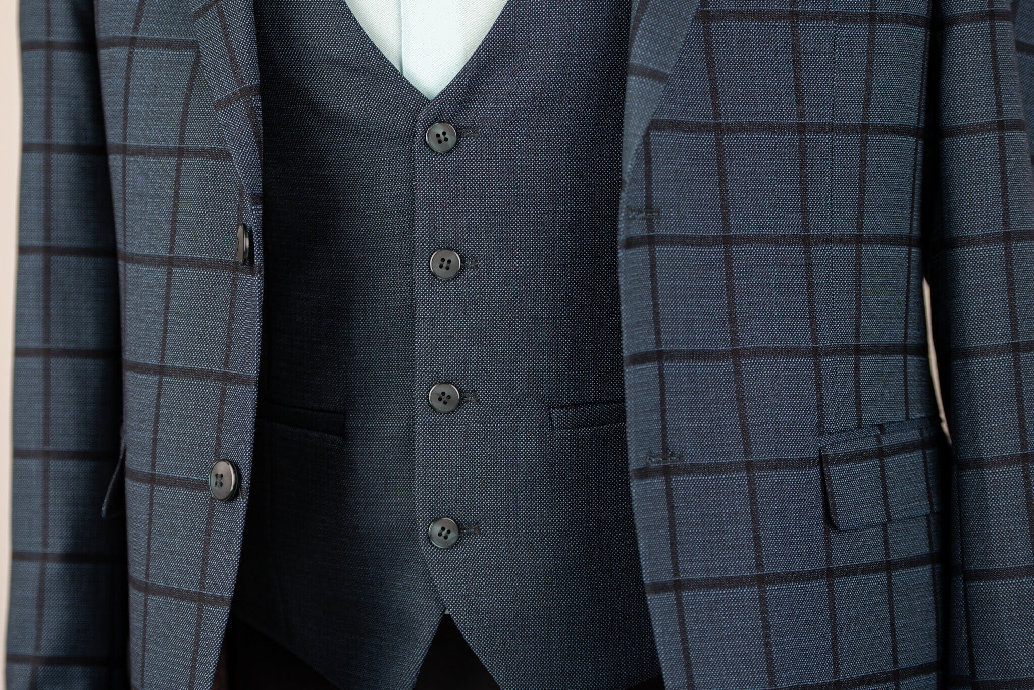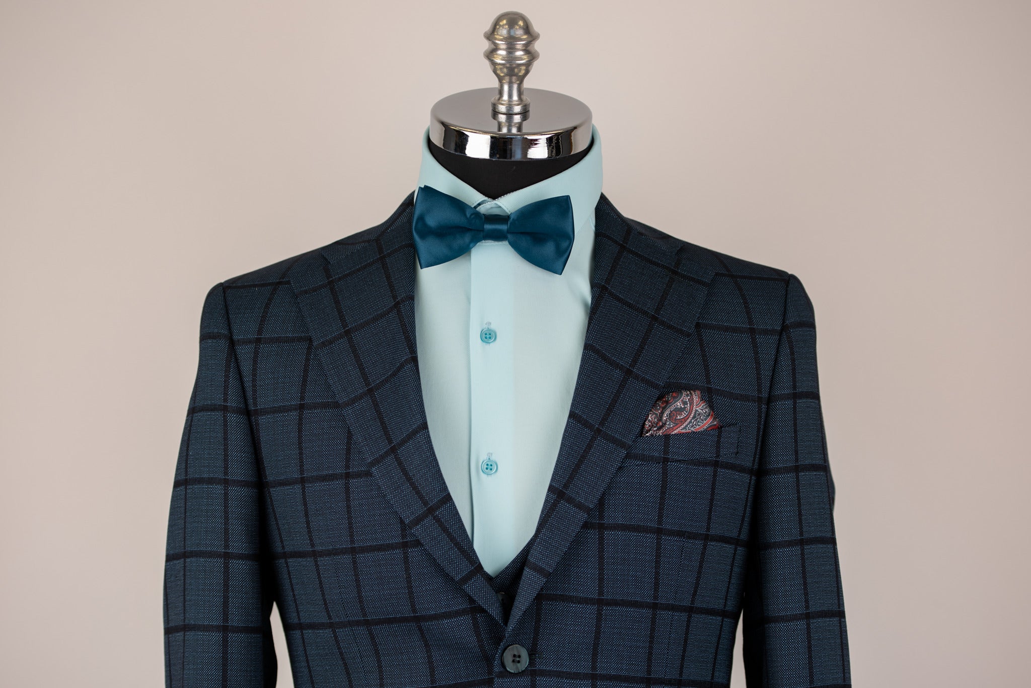 Tumši tirkīza zils Quesste slim fit uzvalks ar vesti un rūtainu rakstu
