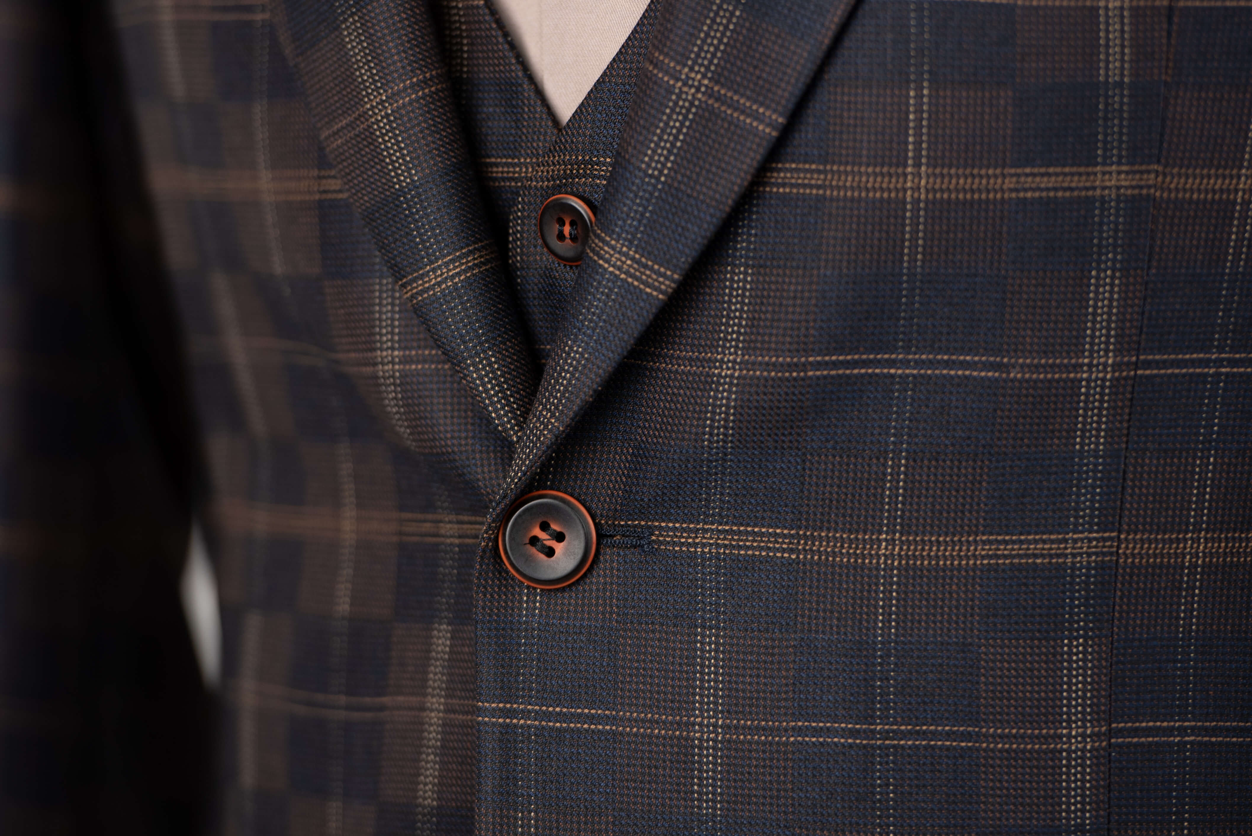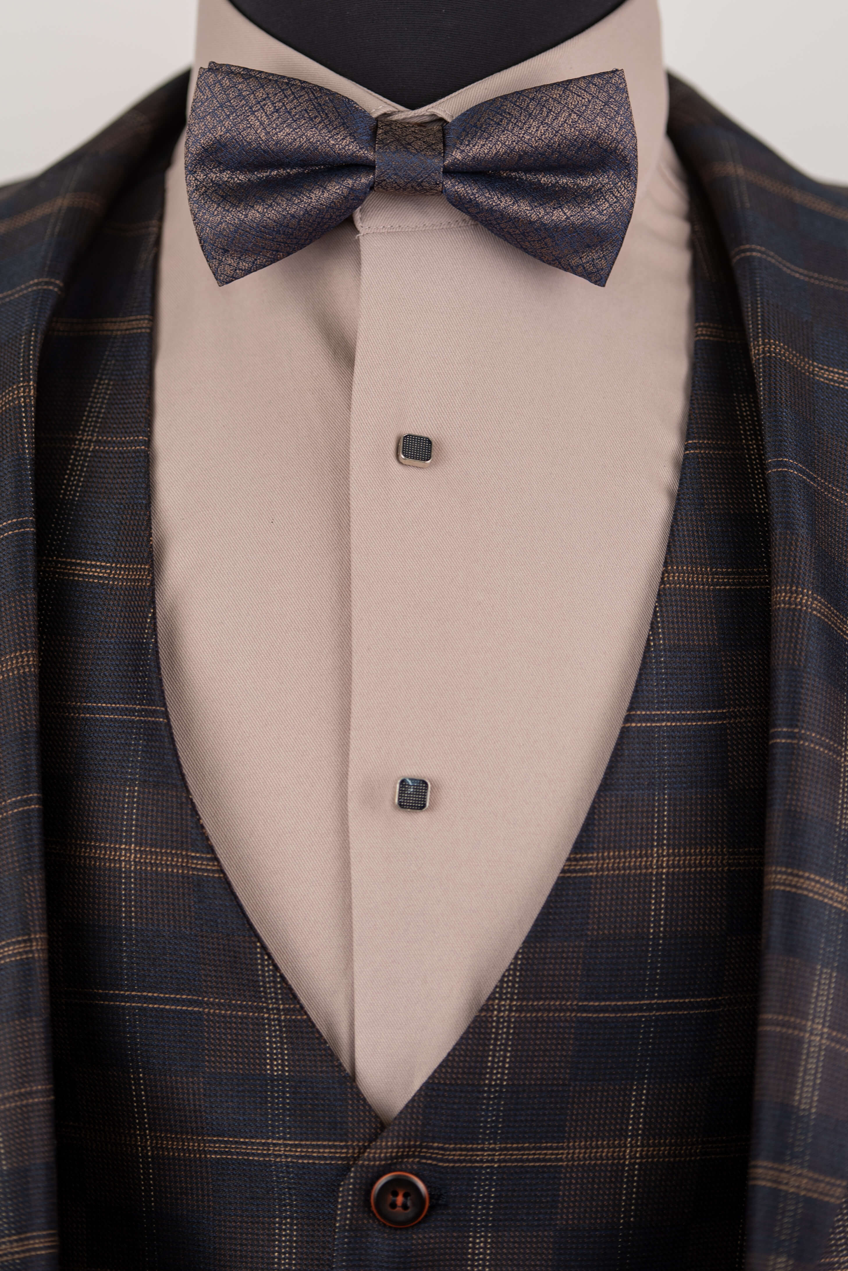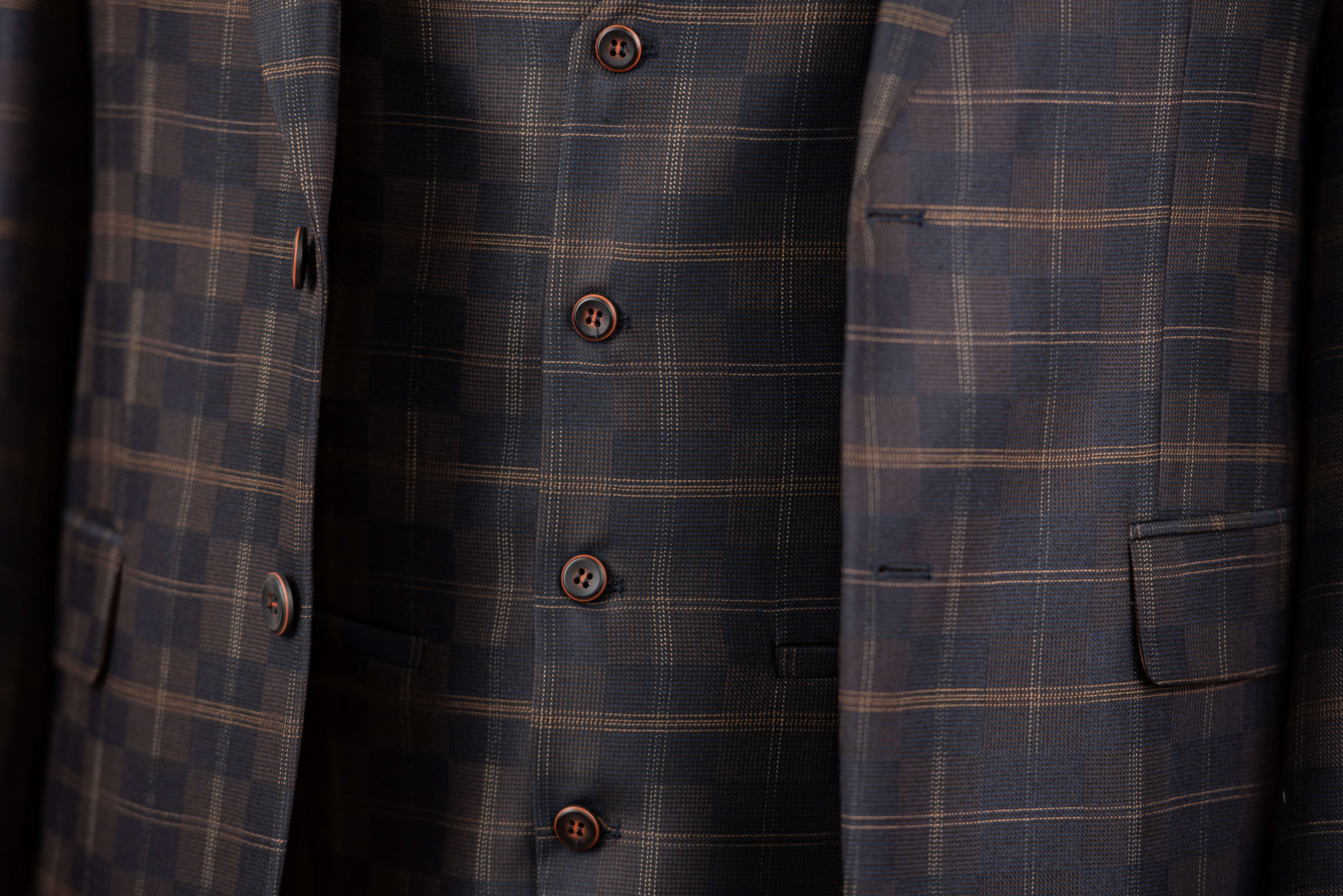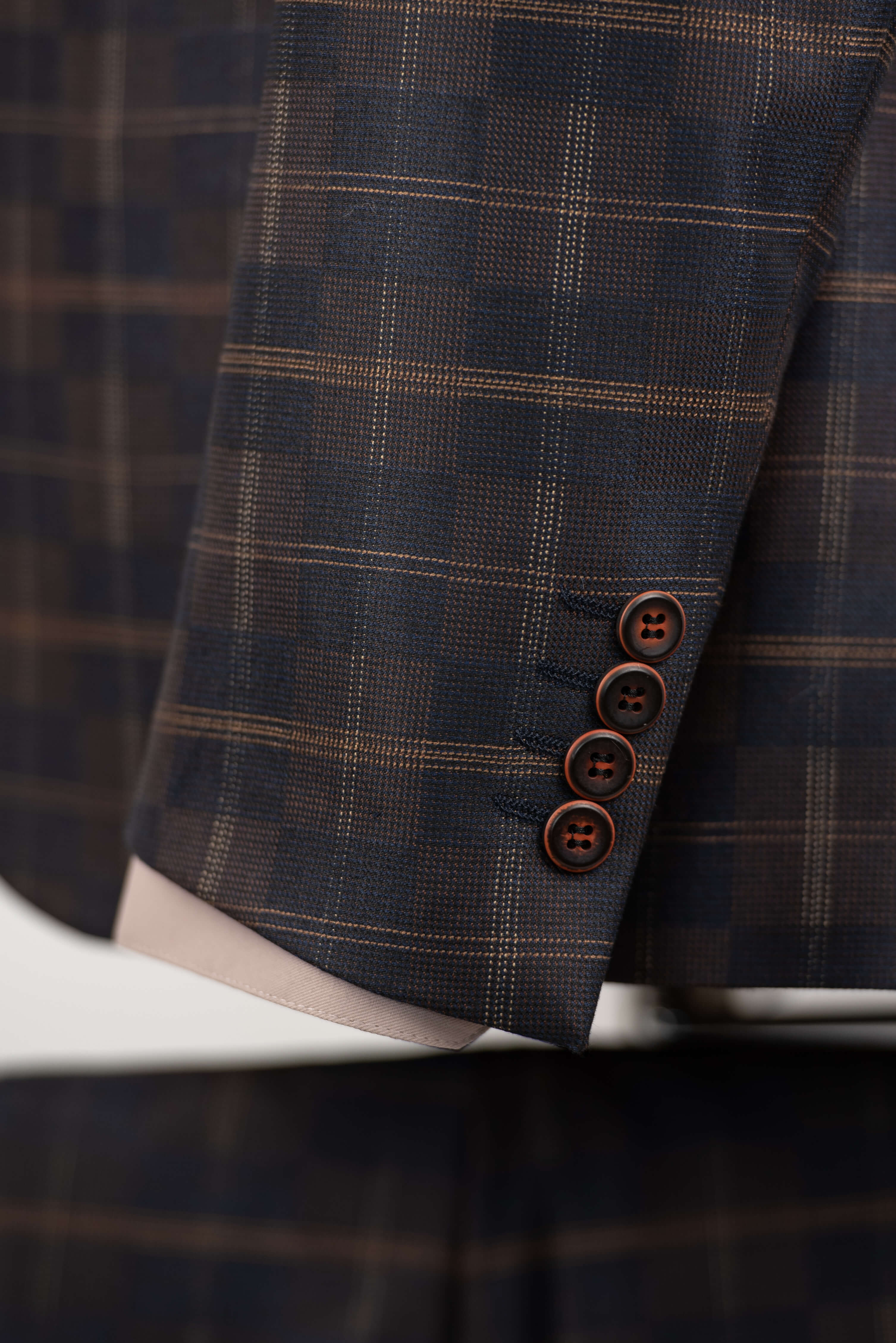 Tumši brūns Quesste pagarinātais uzvalks ar rūtainu rakstu un vesti