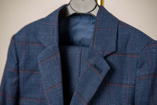 Tumši zils Emilio Massimo slim fit uzvalks ar rūtainu rakstu