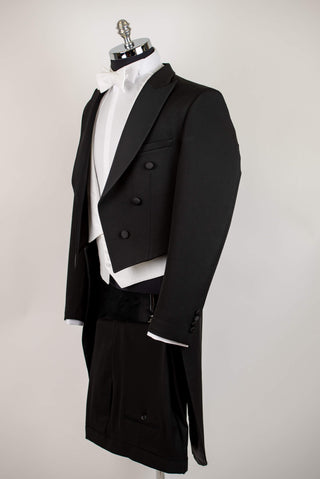 Melna Quesste slim fit fraka ar baltu vesti un satīna atlokiem