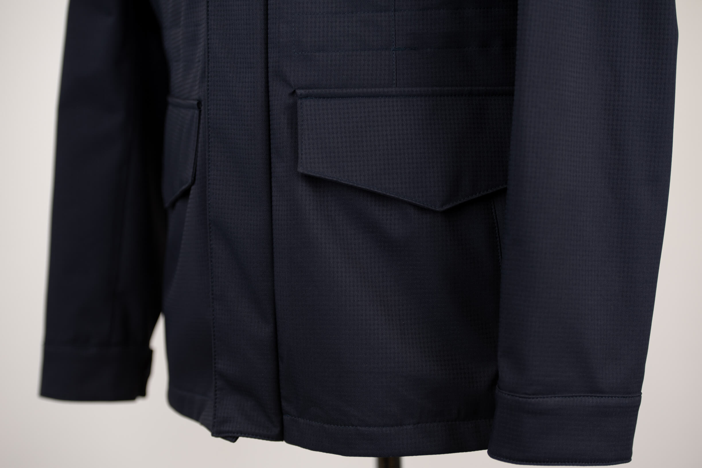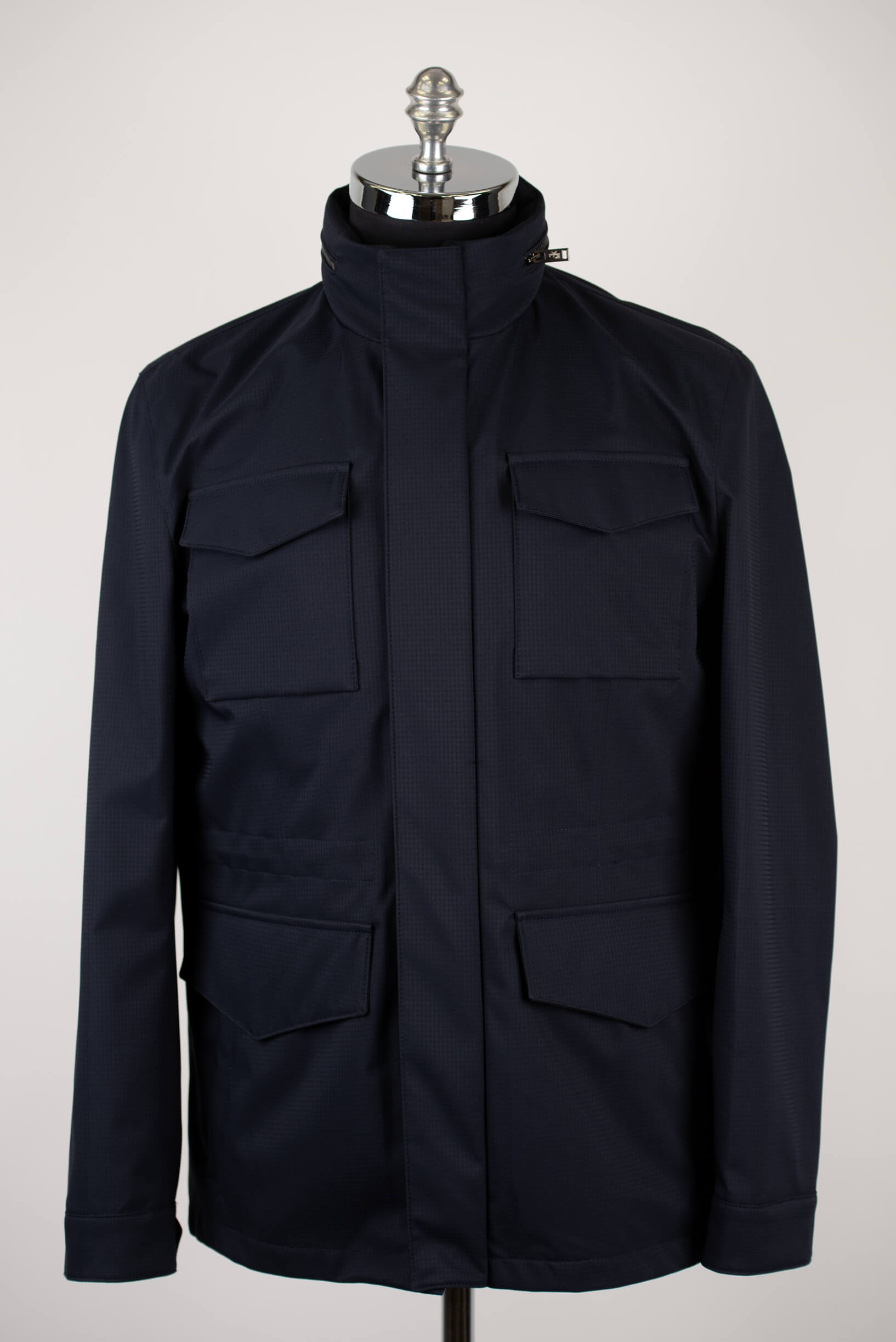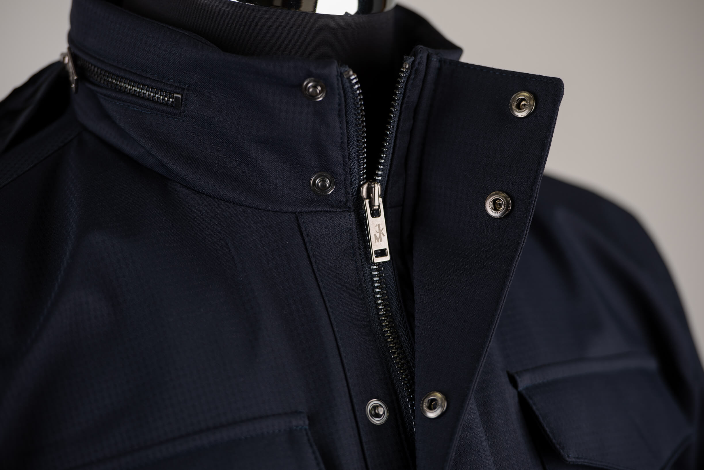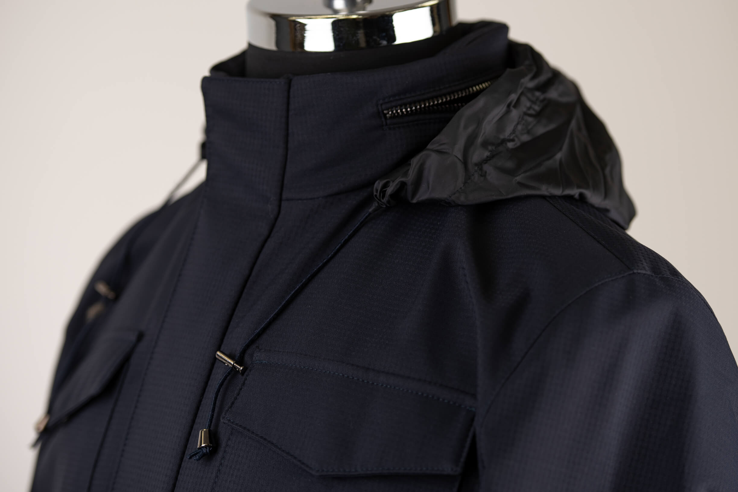 Tumši zila Jakamen āra jaka ar apkaklē iestrādātu kapuci